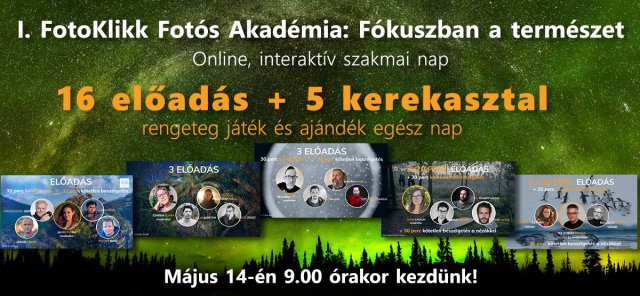 Május 14-én, szombaton, a FotoKlikk megszervezi a hazai legnagyobb, egész napos szakmai napot, 5 szekcióval és 16 előadóval. Az 5 szekciót a témára szakosodott neves moderátorok vezetik.