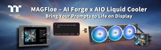 Thermaltake introduces AI Forge, a groundbreaking way to combine performance and design through the TT RGB PLUS 3.0 software. Paired with the MAGFloe Ultra ARGB Sync AIO cooler, the 3.95-inch square LCD transforms from a traditional display into a dynamic digital canvas. Users can create unique, high-quality backgrounds with AI, while also monitoring real-time system data like CPU and GPU temperatures. With the TT PlayLink app, personalized photos and videos can be instantly displayed, merging functionality with creativity. The MAGFloe Ultra delivers both stunning visuals and powerful cooling, making it a centerpiece for any high-performance PC build.