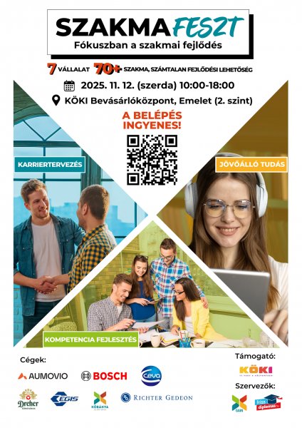 Nagyvállalatok és tapasztalt trénerek állnak össze Kőbányán, hogy november 12-én a munkakeresőknek tanácsokkal, személyes tapasztalatokkal és konkrét álláslehetőségekkel segítsenek. A SzakmaFeszten olyan cégek, mint az Aumovio, Bosch, Ceva-Phylaxia, Dreher, Egis, Richter, valamint a helyi önkormányzat szakértői várják a látogatókat a KÖKI Bevásárlóközpontban, akik szeretnék előrelendíteni karrierjüket és szakmai fejlődésüket.
