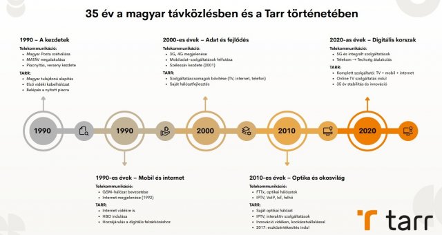 A ’90-es évek televíziózása még antennákra és hagyományos kábelekre épült, az internet pedig gyerekcipőben járt. A TARR Kft. ekkor indította el kábeltévés szolgáltatását, amely néhány utcából hamarosan komplett településeket lefedő hálózattá bővült. A digitális korszak közeledtével a cég az elsők között vezette be a modern technológiát, és a 2000-es évekre már több mint 200 településen biztosított elérést.