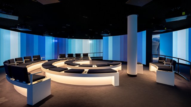 A központ leglátványosabb eleme a 37 férőhelyes, 12,5 méter átmérőjű, körpanorámás 360°-os mozi, amely látványos vetítésekkel mutatja be az EU előtt álló kihívásokat és a mindennapokat formáló közös témákat. A 280 m²-es szerepjátékzónában a látogatók európai parlamenti képviselőként próbálhatják ki a döntéshozatal folyamatát. A térhez mosdók, szerverszobák, biztonsági és személyzeti helyiségek, valamint raktárak kapcsolódnak, biztosítva a zökkenőmentes működést.