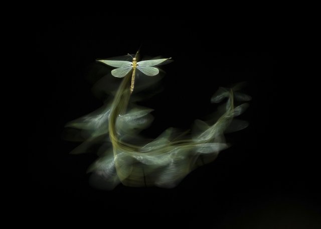 A nyertes felvétel különleges pillanatot örökít meg: a Balaton reggeli csendjében egy hal emelkedik ki a vízből, hogy elkapja zsákmányát, egy árvaszúnyogot. A napfelkelte fényeivel megvilágított kép ritka bepillantást nyújt a tó élővilágának mindennapjaiba, amely gyakran rejtve marad a szemünk elől.