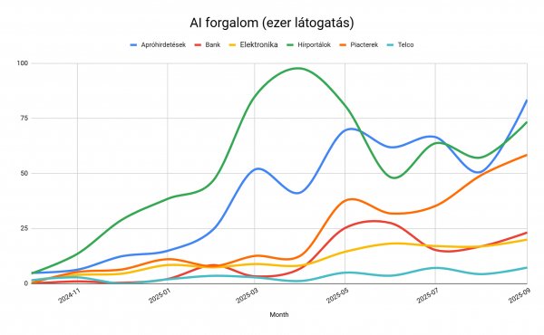 Az év elején még alig volt érzékelhető az AI közvetlen hatása, de februárban megindult az első komolyabb „forgalom-visszaterelési” hullám: egyre több látogató érkezett az AI-eszközökből a forrásoldalakra, elsősorban a híroldalakra. Májusban pedig jelentős ugrás következett – számos oldal kétszer-háromszor annyi látogatást kapott az AI-ból, mint korábban. Ez egyértelműen mutatja, hogy az AI nem csupán „kiveszi” az információt a weboldalakról, hanem egyre aktívabban terel oda vissza forgalmat.