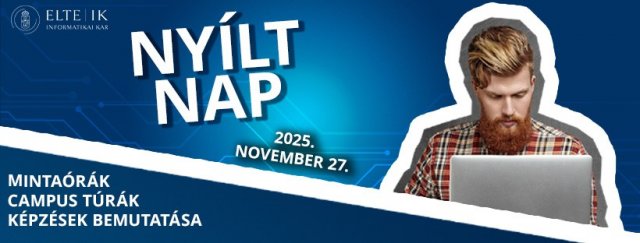 November 27-én az ELTE Informatikai Kara Nyílt Napot rendez mindazok számára, akik a felvételi döntés előtt állnak, illetve informatikai irányban szeretnék folytatni tanulmányaikat.