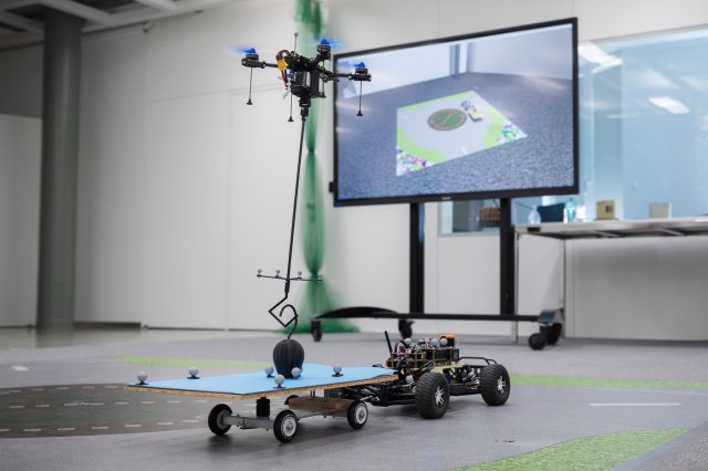 A műsor bemutatja azt a laboratóriumban fejlesztett rendszert, amely képes a drónok autonóm repülésének előzetes megtervezésére, miközben a váratlan helyzetekhez is alkalmazkodik. A drón önállóan veszi fel a csomagot egy mozgó járműről, majd centiméteres pontossággal kézbesíti azt egy másik, szintén haladó járműre. Ehhez csupán a járművek induló és célpozícióját kapja meg, minden további számítást és irányítást a SZTAKI SCL által fejlesztett algoritmus végez. Ilyen, emberi beavatkozás nélküli, teljesen autonóm műveletre jelenleg világszerte kizárólag ebben a magyar laboratóriumban képesek.