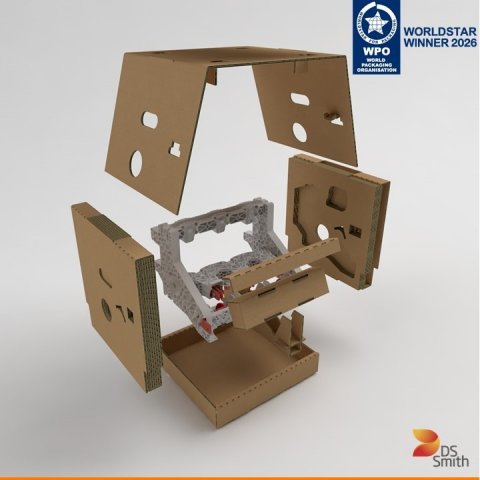 A világ egyik vezető elektronikai megoldásokat kínáló vállalata, a Schneider Electric szintén határozott lépéseket tesz a fenntartható csomagolások alkalmazása felé, amelyet globálisan a DS Smith támogat – ezen belül kiemelt szerepet játszik a magyar csapat szakértelme. A nagy tömegű elektromos megszakítókhoz tervezett univerzális csomagolás egyszerre biztosítja a termékek védelmét és a fenntarthatósági célok teljesülését. Az elektronika kategóriában díjazott konstrukció papíralapú, teljes mértékben újrahasznosítható, stabilan rögzíti a mozgó alkatrészeket, oldalirányból manipulátorral kezelhető, így illeszkedik az automatizált gyártósorokhoz, kevesebb mint egy perc alatt összeállítható, és megfelel a legszigorúbb ipari validációs követelményeknek. „Egy ilyen összetett ipari termék esetében a védelem, a kezelhetőség és a fenntarthatóság közötti egyensúly megteremtése a legnagyobb kihívás. A WorldStar díj számomra annak a bizonyítéka, hogy ez az egyensúly papíralapú megoldásokkal is elérhető – még akkor is, ha sokan ma is kételkednek benne” – fogalmazott Novák Viktor, a konstrukció tervezője.