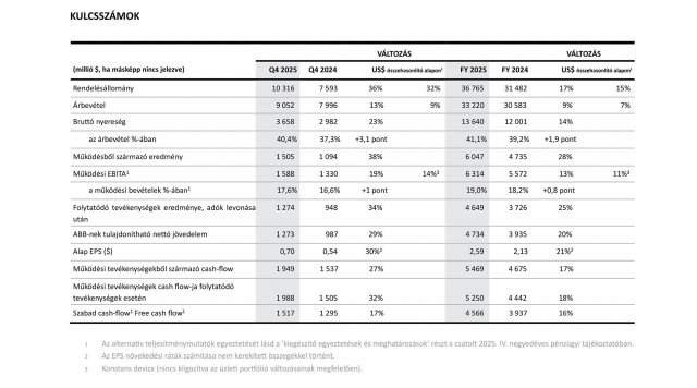 Erős IV. negyedévi rendelésállománnyal, javuló működési teljesítménnyel és jó cash flow mutatóval zárta a rekordot jelentő 2025-ös évet az ABB.