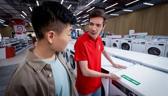 1. A vásárlók kiválasztják az igényeiknek megfelelő energiatakarékos készüléket – például mosógépet, szárítót, hűtőt, fagyasztót, sütőt vagy mosogatógépet. A MediaMarkt szakértő munkatársai segítséget nyújtanak a döntésben, és tájékoztatást adnak az aktuális ajánlatokról.