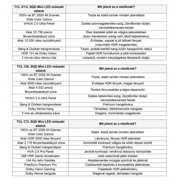 Az innováció és a moziélményt nyújtó otthoni szórakozás iránti növekvő igényeknek köszönhetően a TCL világszerte élen jár a Mini LED technológia fejlesztésében, és folyamatosan erősíti pozícióját a legfontosabb európai piacokon. Az SQD-Mini LED bevezetése forradalmat jelent a televíziós kijelzőtechnológiában. Ez a csúcstechnológia jobb képminőséget, erős fényeket és kiváló színeket biztosít a képernyőkön. A márka bízik benne, hogy SQD-Mini LED-modelljei tovább erősítik ezt a pozitív tendenciát.