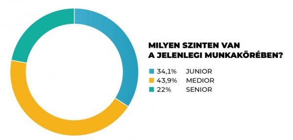 A karrierváltókat nemcsak a magasabb fizetés motiválja, hanem a szakmai fejlődés is: a válaszadók 43 százaléka vett részt céges képzésen az elmúlt évben. Ennek eredményeként a kitöltők 66 százaléka már medior vagy senior pozícióban dolgozik, a legalább négy éve végzettek körében ez az arány meghaladja a 90 százalékot.