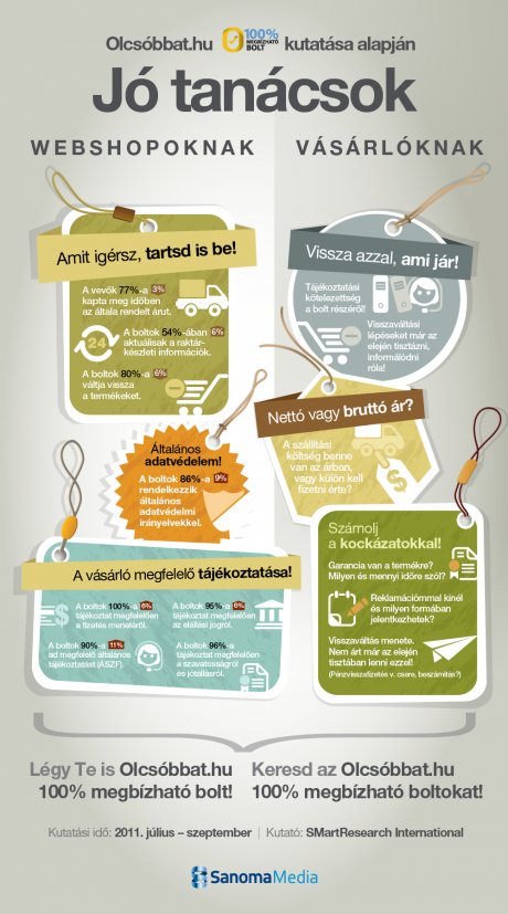 A kitűnő eredménnyel vizsgázó 36 webshop, és a többi „Olcsóbbat 100% megbízható bolt” címet megszerző üzletek növekvő száma, illetve a többiek törekvése a feltárt hibák kijavítására azonban mindenképpen bíztató. Úgy tűnik, hogy webes vásárláskor évről évre egyre nyugodtabban kattinthatunk Magyarországon is.
